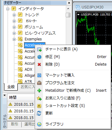 次にインディケータのツリーを開き、インディケーターの上で右クリックすると下記の項目がでます。